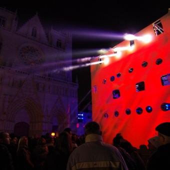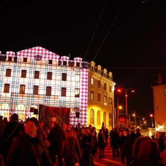 街のあちこちで催される、大がかりなプロジェクションマッピング。