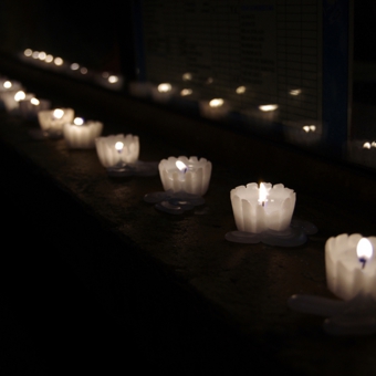 蝋燭の光が街のあちこちに、小さな光もリヨンの街に似合います。